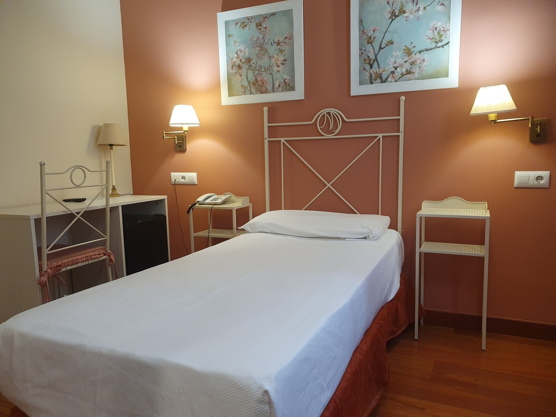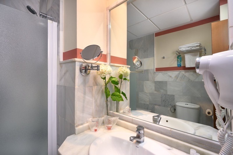El equipamiento incluye wifi gratuito, TV, teléfono, escritorio, secador de pelo y espejo de aumento. Incluyen también agua mineral de cortesía.